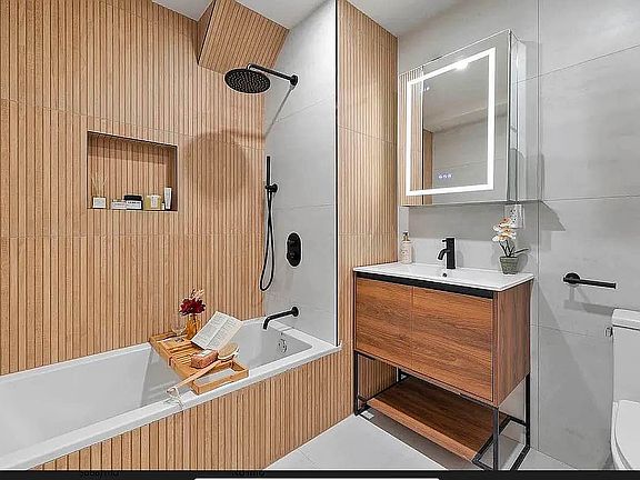 Private backyardHigh-end bertazzoni appliancesEat-in waterfall peninsulaDedicated parking spotPristine en-suite spa bathroomDeep soaking tubSpacious open-concept layout