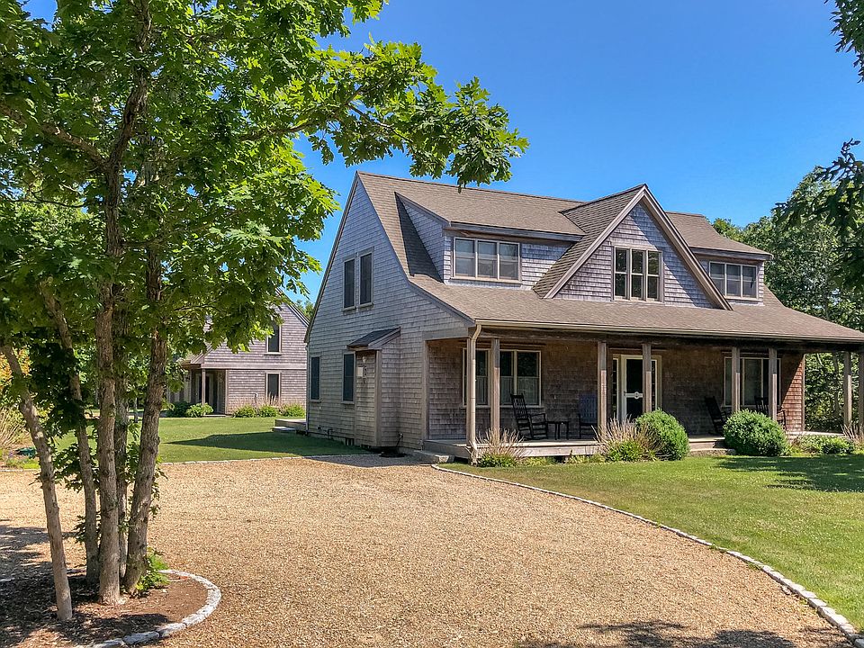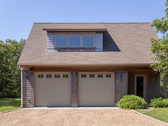 LONGPOINT BEACH HOUSE WITH DETACHED GARAGE AND PRIVATE GUEST SUITE. Being sold fully furnished, this is the perfect package! The main house features 4 bedrooms with master suites on both levels, open living room with gas fireplace, dining room with french doors and kitchen with breakfast bar. In addition to the master suite on the 2nd floor, there are 2 large guest bedrooms with a shared full bath. Privately sited on the property is a 2 car garage with a light-filled guest suite above that includes a private tile entryway, large bedroom and full bath. This lovely home is on 1.4 acres with lots of privacy, spacious lawn, garden shed and a bluestone patio for outdoor entertaining. Enjoy easy access to Longpoint Beach or just a short drive to Lamberts Cove Beach.