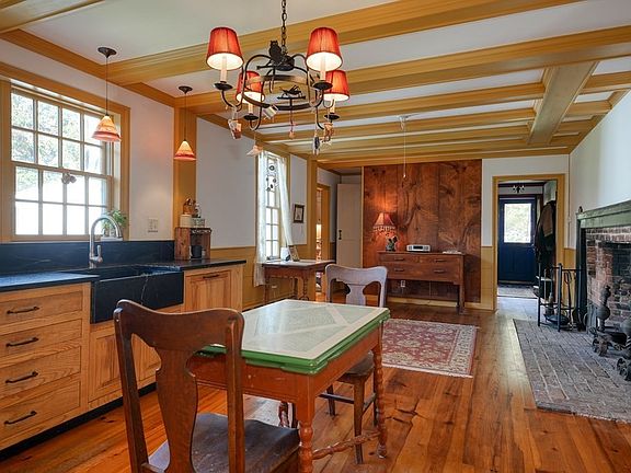 Rare opportunity to own this historic 1730 stately antique colonial exuding charm and historic detailing throughout with 6 fireplaces, wide pine floors, wainscoting, beamed ceilings, and 2 staircases. With character and warmth, this home offers stone floored family room warmed with wood stove, versatile rustic bonus room, office or music room with loft. The striking custom built kitchen with fireplace is highlighted with soap stone sink and counters, Aga stove, and subzero, plus custom walk-in pantry. Elegance in the formal living room and dining room. Two staircases lead to the second floor while another leads to the walk-up attic. Spacious large fireplaced bedrooms and bath complete the second floor with a potential 2nd bathroom space. The first floor has another bath awaiting completion. Radiant heat is found in family room and basement. Meticulously renovated with Pella windows, updated electrical and custom kitchen, back-up generator. Picturesque gardens and patio on country road