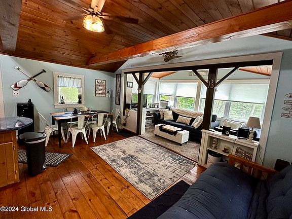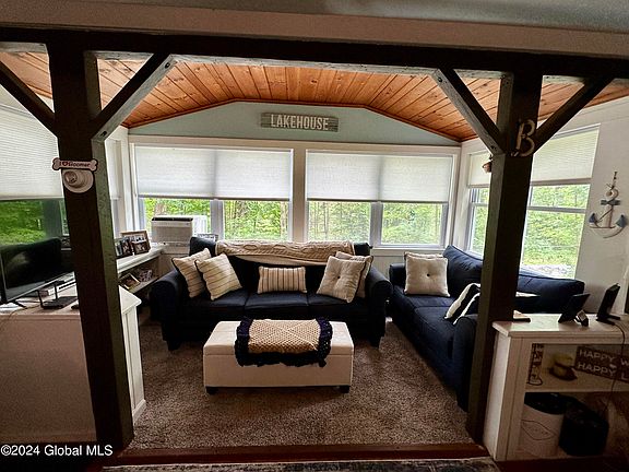 For those looking to enjoy the beauty of Lake George and the picturesque town of Hague, this year-round home is the perfect retreat. The open-concept living space with cathedral knotty-pine ceilings and pine floors provides a warm and inviting atmosphere. The updated kitchen with new appliances makes meal preparation a breeze. The fully remodeled bathroom and comfortable bedroom ensure a restful stay, while the full basement with additional storage room provides ample space for all your belongings. The home being sold fully furnished is a bonus, allowing you to move in seamlessly and start enjoying it right away. Located just a mile from the public beach and boat launch on Lake George, with easy access to lake activities and so much more!