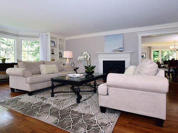Stylish and freshly updated sun filled home sited on 2.38 gorgeous flat acres in highly desirable neighborhood close to town. This lovely 4bd/3.5bth home offers an inviting floor plan with very generous size rooms ideal for entertaining and family living. Four season sunroom with cathedral ceilings opens to private terrace and lovely backyard setting with pool. Lower level playroom with separate exercise room and full bath. Newly painted interior and exterior and newly paved driveway.