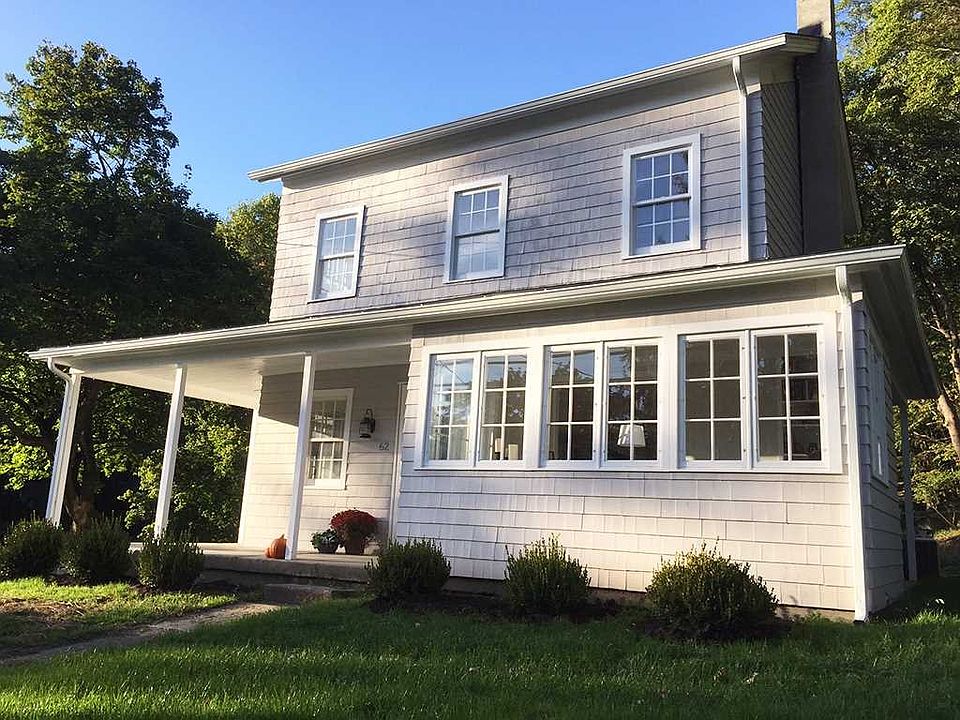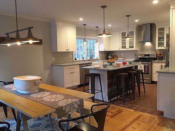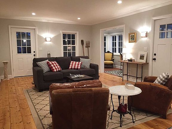 MUST-SEE, sun-filled charmer, walk to village & train. Completely renovated, open floor plan. Eat-in kitchen: quartzite counters, farm sink, large island, stainless appliances. French doors, spacious brick patio. 3 BR's, 2.5 baths, large LR, den and sun room. Master bedroom with bath, barn door and large walk-in closet. 2nd floor laundry room & bonus room. Hardwood floors, recessed lighting, crown molding, central AC. 1.49 acres
