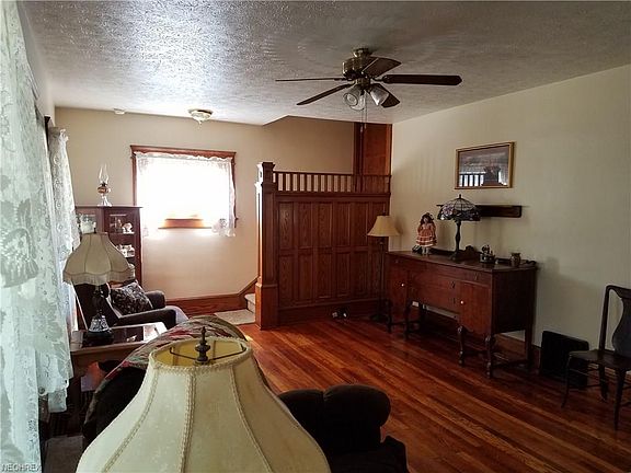 Character and charm throughout this well maintained 3 bedroom home with lovely original oak woodwork and refinished floors. The back yard faces a 5 acre city park. The entire house has been freshly painted inside and out. The kitchen has been updated and includes a new stainless steel stove and refrigerator. The dining room includes a large oak encased 10 ft bay window. The second floor has 3 bedrooms and updated full bath. The 3rd floor has two finished rooms and provides an additional 300 sq ft that can be used for storage or as bonus rooms. The painted basement with 8'6" ceilings provides an additional 672 sq ft storage and work area. The detached garage is a 24x24x10 with wood burning stove and separate entrance. Many updates have been done to the home including: new water heater 2016, new furnace motor, front porch and bay window roof 2017, new windows in kitchen/bathroom/attic, updated wiring and electrical service, additional insulation, new gutters and down spouts, new copper plumbing to upstairs bathroom, new plumbing to kitchen sink and washing machine. Close to downtown including library, EMS, police and fire services, churches and shopping. This property is also located in Rittman's Central Business District (C2) and may used for certain commercial business types.