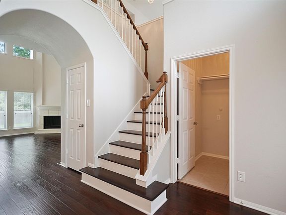 Meticulously maintained 4 bedroom home situated on a GREENBELT LOT! Open floor plan with soaring 2 story ceiling in family room with abundant windows offering plenty of natural light. Hardwood floors throughout downstairs and staircase installed 3 years ago as well as the carpet upstairs. Tile in all wet areas only. Kitchen and breakfast area opens to family room. Large primary bedroom downstairs. Spacious secondary bedrooms upstairs as well as a game room upstairs pre wired for surround sound speakers. Enjoy the covered outdoor patio without the back neighbors. Home has 6 inch gutters with covers throughout and full sprinkler system. Close to area pool and neighborhood parks, restaurants, shops, hike and bike trails. Zoned to exemplary schools!