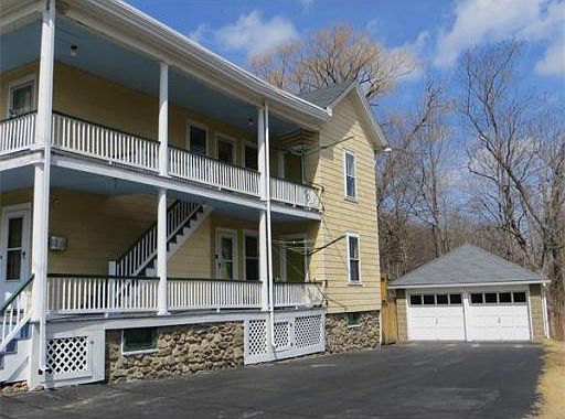 Lovely 2 fam. featuring spacious 5 rm, 2 bdrm units with hdwd floors! Kitchens with pantries for additional storage and work areas. Living and dining rms with french doors, lots of natural light and access to porch sitting areas. Owner's unit also has a new, rear deck overlooking encl. yard and brook. The huge, walk-up attic allows for lots of storage OR potential for additional liv. area. Spacious 2 car garage and storage compartments on each floor. Newer roof, windows and electrical panels.