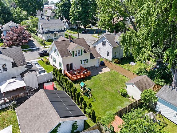 H&B OFFERS DUE 6-10 BY 5PM. Unpack Your Bags & Move Right In to this Very Well Maintained & Charming V-Sided Colonial w/oversized 1 Car Garage nestled on a pretty yard conveniently located near the center of Town/Schools/Shops/Restaurants/Highways. Featuring, APO, an Updated Roof, Efficient Gas Heat & Hot Water. An inviting 4 season porch w/heat & air welcomes you into this meticulously kept home w/hardwd flrs & an open layout! You'll find a spacious sun-filled living rm w/wd flrs flows into a charming dining rm w/a slider to a large deck views the private, partially fenced backyd w/patio for outdoor BBQ's & a handy shed w/electric. The country styled kitchen is open to the dinrm is great for entertaining w/sleek appliances, tile flr, lots of cabinets & counter space w/large peninsula. The 2nd flr offers 3 nice size bedrms w/wood flrs & huge walk-in closets along w/an updated full bath w/tile flrs. The clean full basement has plenty of storage & great future potential to finish.