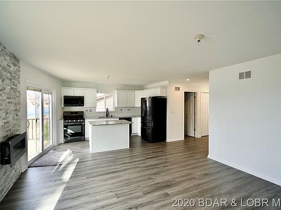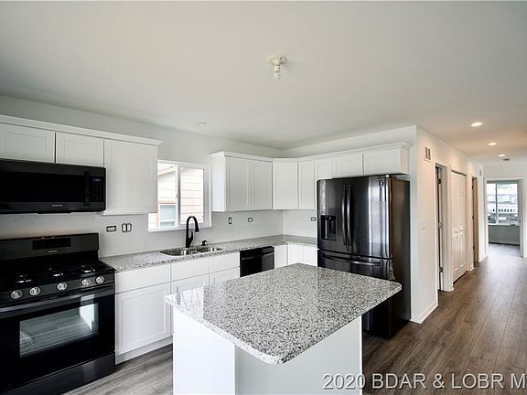 What a steal of a deal! This brand new construction could not be more stunning! Black top all the way to the door & completely FLAT lot with the one thing everyone wants: Cove location & wide main channel views! The home has tasteful modern finishes with gray & white tones throughout, w/ brand new black stainless appliances. The upper features 3 bedrooms: master suite & 1 guest bed face lake side w/ large windows to take in the Lake of the Ozark VIEWS. The 3rd upstairs bedroom is extremely spacious and would be a great bunk bed room. The lower level has another bedroom and full bath. The kitchen and living area are open concept with a large granite island and white rocked fireplace. Step outside on the brand new deck and walk down the flat path (zero stairs!) to your waterfront. The property is so flat the possibilities for outdoor entertainment are endless. Perfect spot for a large martini deck down by the water! Welcome to the Lake.