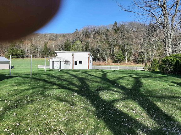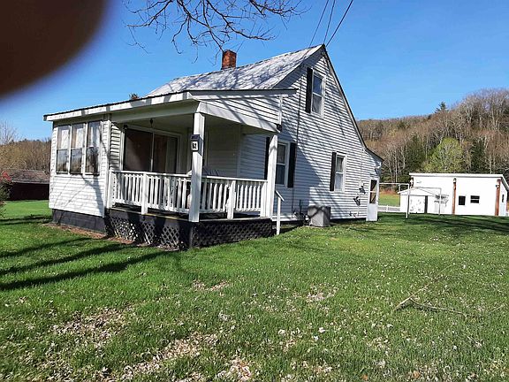 House is set back on a pretty country location and on the market for the first time in over 65 years. It has an eat in Kitchen and picture window in the main dining area. There is a convenient large living room that opens to an enclosed sun porch with slider to a covered porch. A special place to be together. On the first floor is a bedroom plus full bathroom with extra storage. Upstairs you have two bedrooms plus an additional open sitting area or office. The upstairs offers special places. An attached two car garage opens to Breezeway that runs along the back of the house. The basement has a workshop, electrical service, heating system, oil tank & cistern fed from a spring. Back yard has partial fence, shed, out building. Many options for work at home professionals or convenient for family!