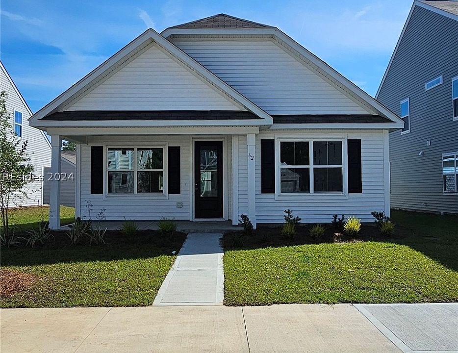 The popular Hemlock plan in charming River Oaks. High ceilings make this open plan bright and airy. Lots of counter space and cabinets! The primary suite is tucked in the rear of the home for privacy. LVP flooring, 42'' cabinets, soft-close cabinets, quartz counters, farmhouse sink, backsplash, ceramic walk-in shower with frameless door,and chrome accents. Enjoy the Lowcountry nights on either the front or rear-covered porches! Discover River Oaks, Beaufort County's newest community peppered with century-old oak trees and wildlife. Bluffton schools! Great incentives with preferred lender/attorney! Ready now!