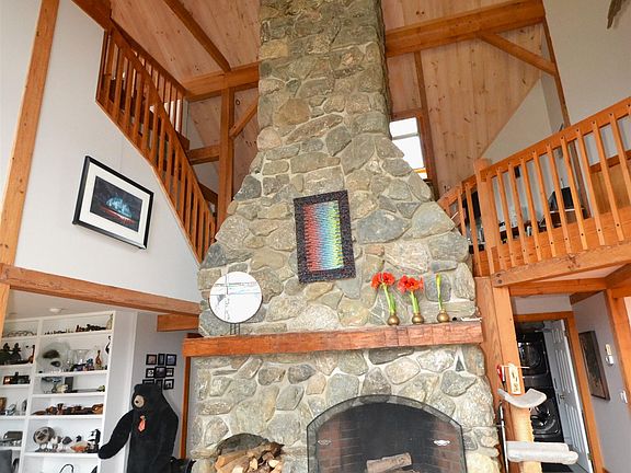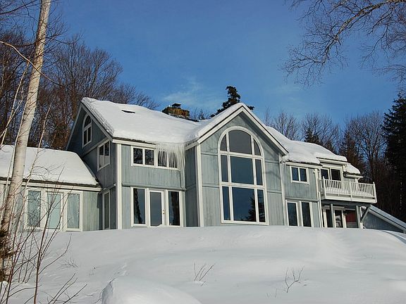 Meticulously updated Post and Beam home with huge views from Mad River Glen to Sugarbush Resort. Great Room featuring exposed beams, floor to ceiling windows, and a majestic stone fireplace. Hand crafted kitchen with stone counters, updated appliances, an island with seating and tons of storage. A convenient mudroom entry from the garage with lots of built in cabinetry. The 3 season enclosed porch for summer evening meals without the bugs! Main level primary bedroom currently being used as a TV room with French door to the exterior and a spacious, custom designed bathroom with tiled walk in shower and gorgeous hardwood cabinetry for storage. Upper floor highlights include a custom built office with skylights, spacious ensuite guest bedroom and a cozy loft room with views of the ski slopes. Graciously sized primary bedroom with walk in closet (custom built-ins), French doors to the balcony and a jetted spa tub with mountain views. A custom bathroom with tiled walk in shower and a heated floor! Park out of the elements in the attached 2+car garage. The property has manicured gardens with water features, lovely woods to walk in and a seasonal stream on the southern boundary. Privately sited and only minutes to the slopes, trails and all the recreational activities the Mad River Valley offers.