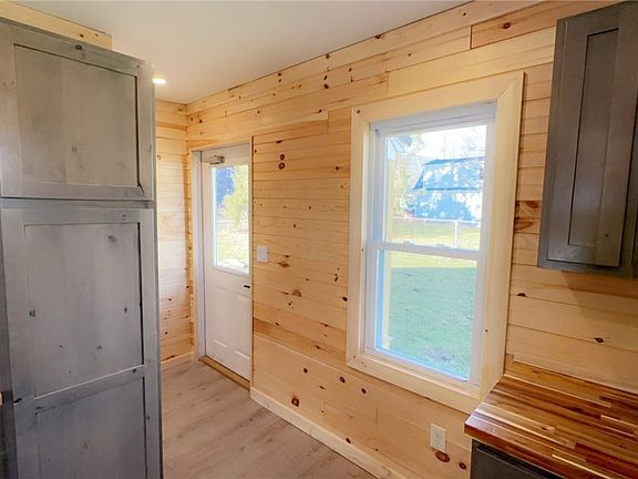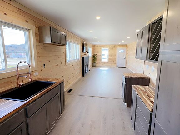 Almost a complete remake of this 1 ½ story home. Quite an undertaking! Metal roof, thermopane windows, new pex plumbing, Kraftmaid kitchen cabinets, all brand new walls and ceilings and floor coverings. Very warm inviting LR/DR/Kitchen combination with fireplace and knotty pine walls and Pergo type floating floors as well as Lifeproof flooring. Total new full bathroom with shower, vanity, motion activated faucet, exceptional tile work. 2 bedrooms and a laundry room are located on the first floor. Spacious 3rd bedroom with numerous built-ins on the 2nd floor. Full basement houses the new energy efficient furnace and new hot water tank. 100 amp circuit breaker panel. Central AC. Sizeable yard with a one car garage. All of this is conveniently located within walking distance from town, hospital, schools and public park.