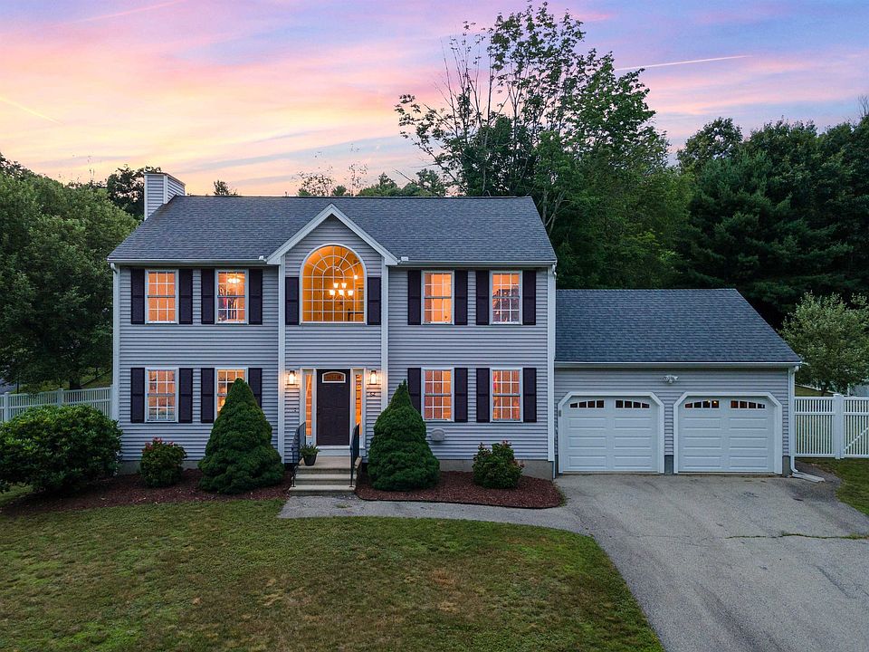 NH CHARM AND COMMUTER’S DREAM. This classic, pristine, 3bedroom, 3bath Colonial with a 2 car attached garage looks like new construction and offers the privacy of 1.19 acres. The open pasture like setting with fenced in yard has apple trees and blueberry bushes, plenty of room for play, hobbies, entertaining or simply relaxing. From the moment you arrive, you see the driveway entry is accented with stone walls. The walk way leads to the front door that opens to the bright 2 story foyer with gleaming hardwood floors. The spacious, fireplaced living room and kitchen with dining area make this the heart of the home and flow perfectly to the fantastic grilling deck. You will love the kitchen with granite, SS appliances, 5 burner gas stove/oven and the oversized breakfast bar. Upstairs brings you to the primary bedroom with double sink bathroom and walk-in closet. Two additional bedrooms share the 2nd floor bathroom. All bathrooms are remodeled and have premium tile. The basement has lots of storage and would be a great area to finish. Serviced by Natural Gas, Public Water and Sewer! A MUST SEE!