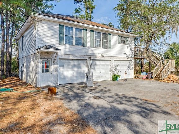 Incredibly unique property that is a builder's dream! The property has a large cleared area ready to build on, 1.38 acres is buildable, and is located at the end of a private road that has NO HOA fee. The original home sadly burned in 9/2022 but the 3 car garage and 1,081 sq. ft. upstairs apartment remain. The upstairs garage apartment would be perfect for an immediate tenant or to live in while you build. The dock has a large dock house with 2 floating docks on each side and is the last dock on that section of the Ogeechee River so it provides plenty of privacy. If you need a place to keep your boat in summer 2023, you found it! *The drive-on docks are excluded from sale.