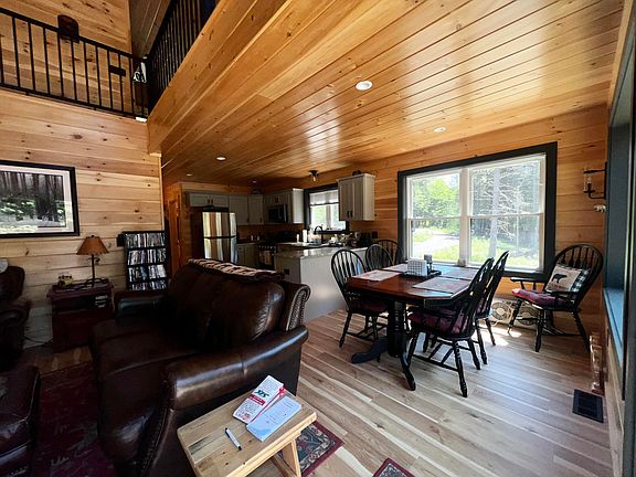 Who doesn't love a log cabin in the woods of Rangeley, ME? Here is a classic log sided cabin with open living concept to enjoy all 4 seasons. This home is newly constructed home and tucked away on a private 1.86 acre lot with direct snowmobile access yet close to Rangeley village, marinas and ATV trails. The front door open up to mud room then into kitchen with high end appliances and living room with wood floors, woodstove and cathedral ceilings. This home has 2 bedrooms and a large sleeping