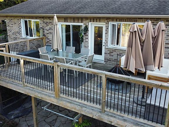 Welcome to this spacious and beautifully rebuilt bungalow, offering over 2,000 sq.ft. on the main level and set on a generous 0.65-acre lot within the town limits complete with no backyard neighbours, plenty of parking, and room to build a workshop if desired. Completely renovated from the inside out in 2010, this home blends modern function with warm character. The open-concept layout features a open foyer, a convenient mud/laundry room, soaring cathedral ceilings with tongue-and-groove pine, three skylights, and oversized windows that fill the home with natural light. The impressive kitchen is a cook’s dream with gas stove, work-island, pantry, and appliances included, all open to the dining area and the bright living room with cozy gas fireplace. The rear of the home is designed for comfort and relaxation, showcasing a spacious primary suite with walk-in closet, 3-piece ensuite, and walkout to the oversized 26’ x 14’ deck overlooking the fully fenced backyard. Two additional bedrooms with (1) double closet and one ideal as a bedroom or home office with deck access plus a full 4-piece bath and additional storage complete the main floor. The lower level offers incredible potential with its own entrance and with much of the heavy work already complete. With a central hall layout, it’s ready to be finished into a recreation room, bedrooms, bathroom, office, gym, TV room, or even a second kitchen perfect for extended family, rental income, or a contractor’s vision. A covered patio area adds even more living space. With RT zoning, the property provides flexibility for a variety of uses permitted by the Town of Drayton. The oversized lot is a true retreat private & landscaped w/ornamental trees, fruit trees, bushes, a fenced garden, shed & plenty of space for children to play. This one-of-a-kind property offers endless possibilities & opportunities. A simple drive-by won’t do it justice, you'll want to step inside & explore everything this home & property have to offer.