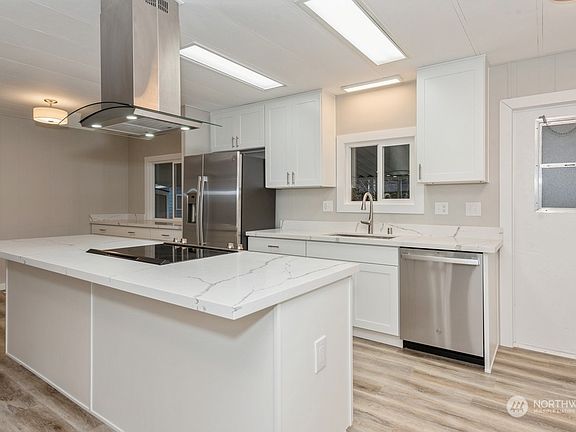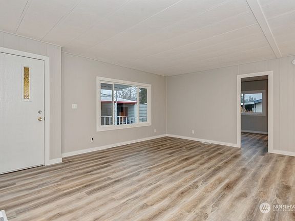 55+ park. Fabulous remodel. New kitchen cabinets, countertops & appliances. New cabinets & countertops in bathrooms. Shelves installed in closets. All new flooring & doors. Tubs & shower stalls sprayed white. New shower heads & faucets. New fixtures including interior lights. New washer & dryer plus washer dryer box/plumbing. New angel stops in kitchen, baths & toilets. New windows & blinds. New paint throughout. New furnace & heat pump. New heat thermostat. New outlets & switches. New doorbell. New composition roof. Brand new shed & paint. Carpet will be installed on the front deck and back deck weather permitting, prior to closing. This home is absolutely beautiful!