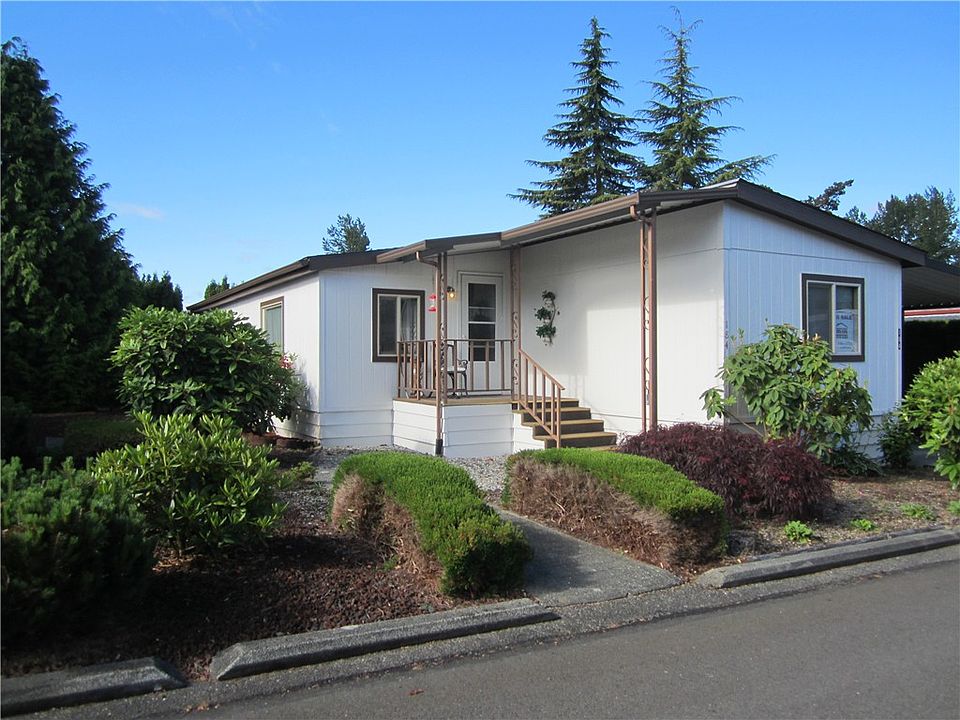 Great 2 bedroom 1 3/4 bath home in a highly rated 55+ mobile home park. Featuring an updated master bathroom and a covered porch. This home also has 3 solar tubes which provide great lighting in the interior. Master bedroom has a walk-in closet w/ attached bath. Kitchen has plenty of storage and an island range. Large deck off the back leads to covered parking and a storage shed. Small Dogs and Indoor Cats allowed. Seller is offering a $1,000.00 flooring credit - Estate Sale Form 17 Exempt