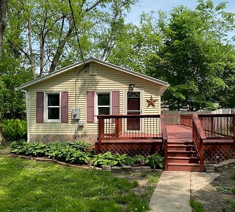 Cute 2-bedroom with with newer kitchen, bath, windows, electrical, appliances, furnace and water heater. Enjoy the summer on the large deck and shady front yard. Oversized 1-car garage for parking and storage.