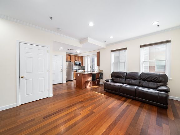 Welcome to this spacious 2-bedroom, 2-bathroom condominium home w/ 2 garage parking spaces in the highly sought-after Park Arms gated community. This sunny & bright home features an open-concept living space with hardwood floors & crown molding, creating a warm and inviting atmosphere. The kitchen is a chef's delight, boasting granite countertops, a generous peninsula style breakfast bar and stainless steel appliances, including a gas oven-range, microwave, dishwasher, and refrigerator. A primary bedroom easily accommodates a king size bed & offers a deep walk-in closet and an en-suite bathroom complete with a shower/tub combo and storage vanity. The second bedroom, with its generous double-sized closet, is ideal for another family member, home office or guest. The main bathroom has a tiled shower/tub combo and cabinet vanity. Additional features include central air, recessed lighting, and an in-unit washer and dryer. The property also comes with 2 tandem covered garage parking and there is extra storage room, providing ample space for all your needs. Nestled in a secure, beautiful, gated community, this home is centrally located near shopping, restaurants & public transportation making it perfect for commuters to NYC or other NJ locations.