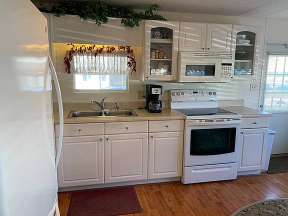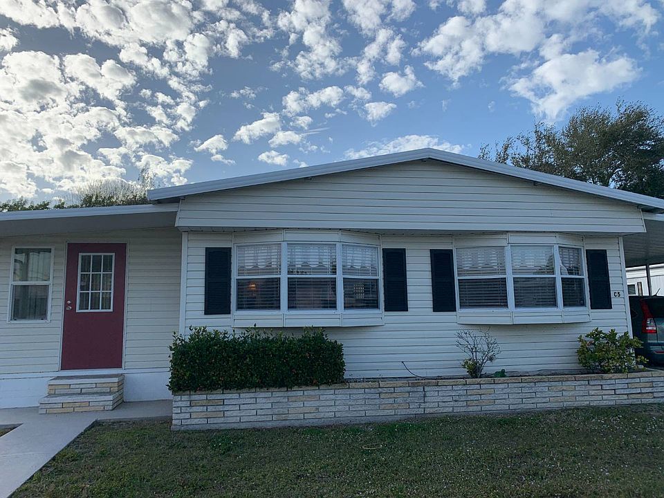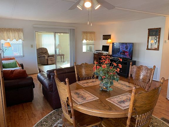 This is a mobile home for sale in a 55+ community on a rented/leased lot. This updated mobile home is 2BR/1.5BA on a perimeter lot. It is being sold mostly furnished/turnkey. There are newer replacement windows throughout and a new vapor barrier was installed in 2008. There was a partial roof Kool Seal installation in 2012. There is laminate, carpet and tile in all the right places. The kitchen is light and bright with updated cabinets, countertops, laminate floors, ample cabinet space and newer appliances. The kitchen is open to the dining room and living room which has laminate flooring and a ceiling fan. The living room has sliding glass doors to an enclosed 10 x 14 porch with a window air conditioner for extra living area. The master bedroom has laminate flooring, custom painted panel walls, a ceiling fan, vertical blinds and a closet. There is a 1/2 bath en suite with tile flooring, a single sink vanity and a new 'high' toilet. The second bedroom has laminate flooring, custom painted panel walls, a ceiling fan, a closet and vertical blinds. The hall bath has tile flooring, a single sink vanity, a walk in shower and a new 'high' toilet. There is a washer/dryer in the shed on the carport. The carport can park 2 cars tandem style. The lot rent is $676 and includes the water, sewer, trash, lawn and all the community amenities as outlined below. A small price to pay to live in paradise! The community has a heated pool, shuffleboard courts, community room library and community activities. All this within minutes of downtown Bradenton and the Gulf beaches. Florida MH Sales, LLC cannot guarantee or warrant the accuracy of this information, measurements or condition of any property. Measurements are approximate. Lot rent is subject to change.