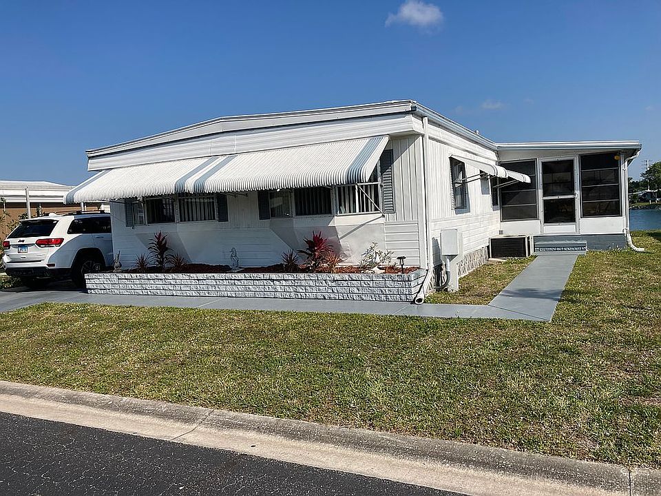 Main home is 42' x 24' under A/C and Lanai 25' x 10' overlooking 8 acre lake. Lake frontage is 70 ft.