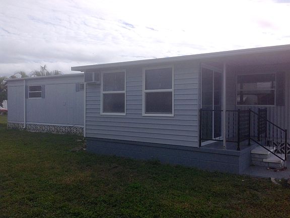 620 57th Ave Lot E4 Bradenton FL. 34207 Swan Lake Village 55+ Community (Pet Friendly) with a Pool This home is on a rented/leased lot. This 2BR/1BA home is ready for you to move in! It's sold partially furnished and turnkey! This home is cooled with a central AC and comes with an enclosed, 12' x 14' side-set addition. There is also a separate, 10' x 12' side-set screened lanai. There are inside laundry hookups. The stack washer dryer is included in the sale. The interior has clean, bold, coastal color custom paint throughout! This home is very nicely decorated and is in very good condition. There are many recent upgrades including: Thermopane windows! Updated Electrical panel! Newer Hot water heater! Bathroom plumbing! Laminate flooring throughout! 10' x 12' Screened lanai! The carport lanai is tastefully decorated with sun drapes, full size rug and high-end wicker furniture. There is an 8' x 10' storage shed within the screened in area. There is also a lovely outdoor patio sitting area in the backyard. Mature palms provide shade to this area in the morning. The Eat-in kitchen has new lower custom cabinets and a decorative gray tile backsplash all around. There are upgraded countertops. Appliances include stainless stove/oven, refrigerator, dishwasher, and a microwave. The large living room has laminate flooring and opens to the kitchen and side-set addition. The enclosed add-on has thermopane windows and a supplemental window AC for additional cooling. This room has a separate entrance door with opaque covering to provide privacy. The room can function well as a bedroom, office, or den area. There is vinyl flooring in this room. The main bedroom is quite spacious. There are three dedicated closets. The stack washer/dryer is located in this room. It has laminate flooring and a ceiling fan. The hall bath has a single sink vanity and tile countertops. There is a tub/shower combo and laminate flooring. There is also a newer comfort level toilet. The lot rent is estimated at $724 and includes the water, sewer, trash, lawn and all the community amenities as outlined below. A small price to pay to live in paradise! The community has a heated pool, shuffleboard courts, community room library and community activities. All this within minutes of downtown Bradenton and the Gulf beaches. Florida MH Sales, LLC cannot guarantee or warrant the accuracy of this information, measurements, or condition of any property. Measurements are approximate. All homes are sold "as is" and personal or professional inspection is encouraged. Lot rent is set by the community and is subject to change. All buyers must be approved by the community prior to closing on a negotiated sales contract
