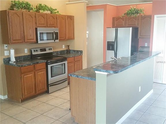 AWC - Taking Backup Offers Gorgeous 3 bedroom 2 bath home in Davenport Lakes. Entry way has beautiful wood flooring. Living room dining room combo. Spacious eat in kitchen with stainless steel appliances is open to the family room. Master bath features two vanities, garden tub and large walk in closet. Both bathrooms have been updated with new cabinetry and granite counter tops. Newer carpet, ceramic tile and light fixtures throughout. Enjoy the outdoors with an extra large screened patio and fire pit in the fenced back yard. Community offers a dock, playground, tennis court, pool and private boat ramp. Great location close to major highways, shopping, restaurants and Disney.