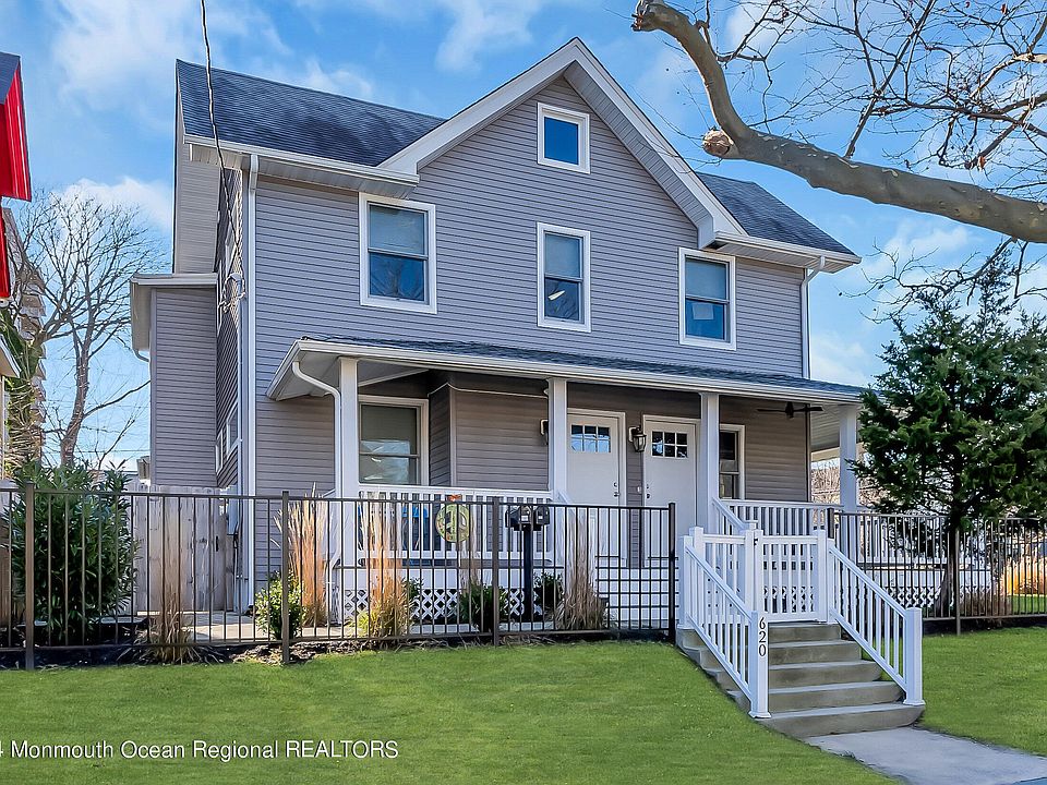 Showings Start 9/20. Recently renovated 2 family home on the east side of Asbury Park. This home features 2 separate entryways w/ charming wrap around porch 6 car driveway and fenced in yard with paver patio. Both units are on separate utilities and have newer mechanicals & central AC.First floor features hardwood flooring, 10 ft ceilings, open floor plan & laundry room, 5x6 walk in pantry Kitchen has a second pantry custom 42 in cabinets, center island w/ granite countertops & sliders leading to the backyard. Two bedrooms w/two full baths.Full basement. Second unit offers an open floor plan 2beds/2baths laundry closet with washer dryer . Kitchen has white shaker cabinets, granite countertops, and recessed lighting. The second level has a space for a home office.