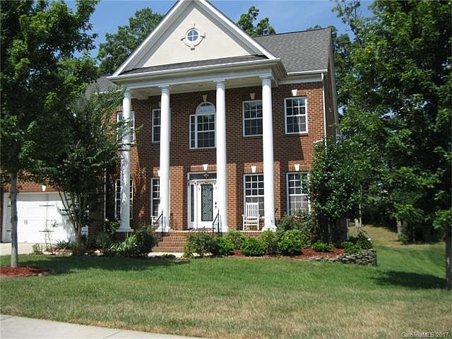 Stately 5 BR home near Concord Mills and in Cox Mill schools. Very spacious main flr with formal dining with tray ceiling, chair railing & picture moldings plus living room; lrg kit with island; lots of cabinets, butler pantry; granite counters, breakfast bar; BR with bath walk in closet. Upper level has huge mbr with tray ceiling, bonus / BR with closet, 2 other BR each with it's own bath. 3rd level has massive bonus & full bath. Walking distance to pool & tennis. Includes lawn maintenance
