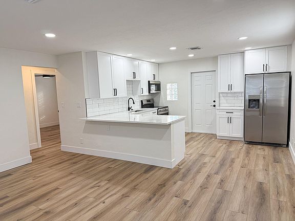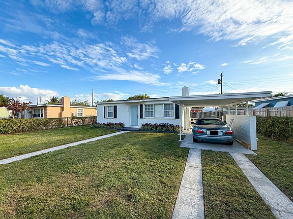 This newly renovated home is just minutes away from all that Palm Beach County has to offer. The home features a new roof, water heater, HVAC system installed in 2024, and accordion shutters. Inside, you will find luxury waterproof vinyl flooring and a spacious living area centered around the cozy wood-burning fireplace. The open-concept kitchen offers new shaker cabinets, all-new Frigidaire appliances, and quartz countertops. Outside, you will find a spacious, fenced-in front yard and fenced-in back yard perfect for pets, as well as covered parking. This property is just minutes away from Interstate 95, Florida's Turnpike, Palm Beach International Airport, Downtown West Palm Beach, the outlet mall, countless restaurants, and just a short drive to the beautiful beaches of Palm Beach!