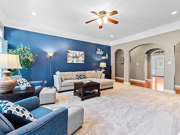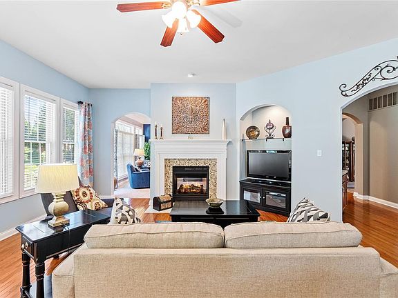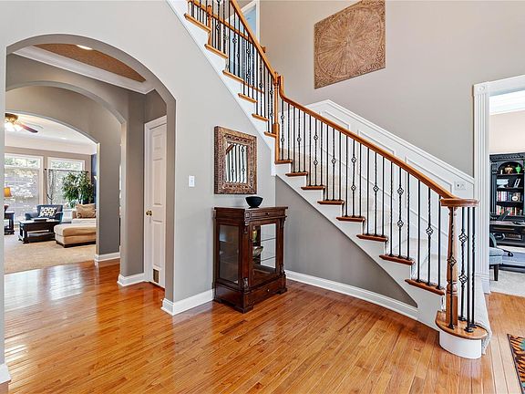 Discover elegance with this 1.5 story home in the highly sought-after Manors At Heritage Trails Subdivision! This 4,000+ sqft home has so much to offer- from the spacious rooms, serene back yard, & bonus room upstairs. This well thought out floor plan allows for the perfect entertaining spaces with 10 ft ceilings, double sided gas fireplace, wood floors & tons of windows for ample natural light throughout. The spacious kitchen has generous cabinet space, an oversized island w/ cook top, breakfast bar, & hearth room w/ breakfast area. Work from home in the formal office or get to work with easy access to Hwy 364. The spacious main level primary ensuite boast dual W-I closets and a luxurious bathroom. The upper level is home to 3 bedrooms, 2 of which are connected by a jack-n-jill bathroom, an additional full bathroom, & a Loft/Bonus Room. The 9' poor in the basement is roughed in for a full bathroom and just waiting for your finishing touches. Also features extra tall garage doors.