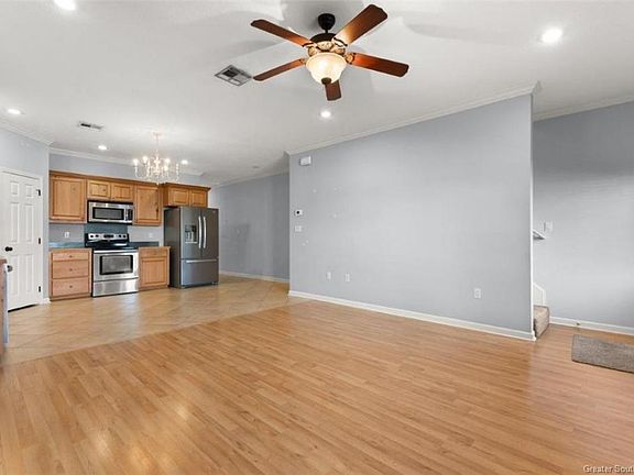 Discover this charming 3-bedroom, 2-bath townhouse. Enjoy an open-concept living and kitchen area featuring wood cabinets, stainless steel appliances, and ample space for entertaining. The downstairs master bedroom includes an en-suite bathroom with a double vanity and a spacious walk-in closet. Upstairs, two additional bedrooms share a Jack Jill bathroom, each with its own sink for added convenience. While the walls could benefit from a fresh coat of paint, the home is well-maintained and ready for you. The covered back patio is perfect for year-round relaxation or entertaining. Located in Flood Zone X for peace of mind and just minutes from McNeese State University, this home offers both comfort and convenience! All measurements are more or less.