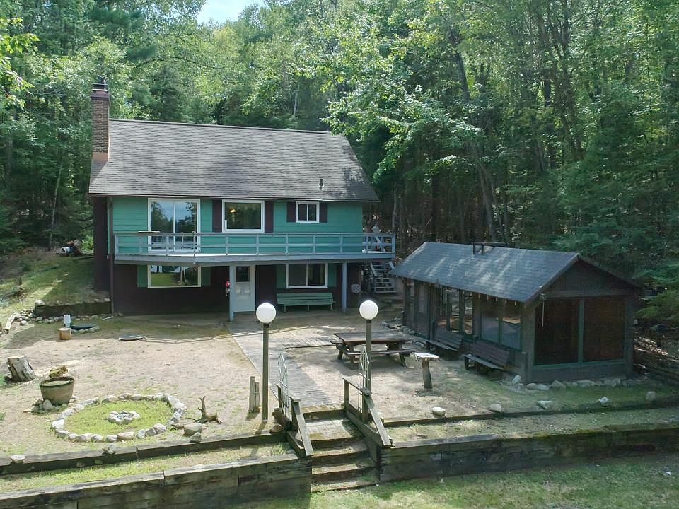 Wooded privacy awaits at the end of the road in this 2BR/1.5BA home with 100+ of frontage on 171ac Lone Stone Lake. 15 mins from downtown Three Lakes & surrounded by the Nicolet National Forest (with trails at the end of the road), this prime location on a pristine lake is perfect for a Northwoods getaway or a new home base. The kitchen is spacious & the living room has a wonderful wood burning fireplace, a walkout to the deck & gorgeous lake views. Bring your design ideas to the second flr attic space & the lower level (creating the perfect primary suite, bunk house or family spaces). The lakeside glassed storage space is another opportunity for imagination & design. The Sam Campbell hiking trails are a mile down the road; ATV/Snowmobile trails can be picked up on Old Military Rd. Love to fish? Youll find Musky, Panfish, Bass, Northern Pike & Walleye in Lone Stone Lake. Close to everything you need yet tucked into the natl forest & all it has to offer is Northwoods perfection!