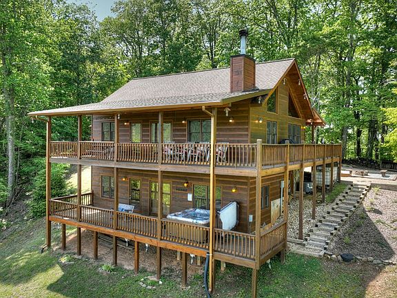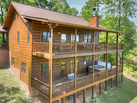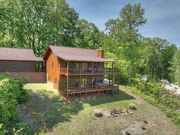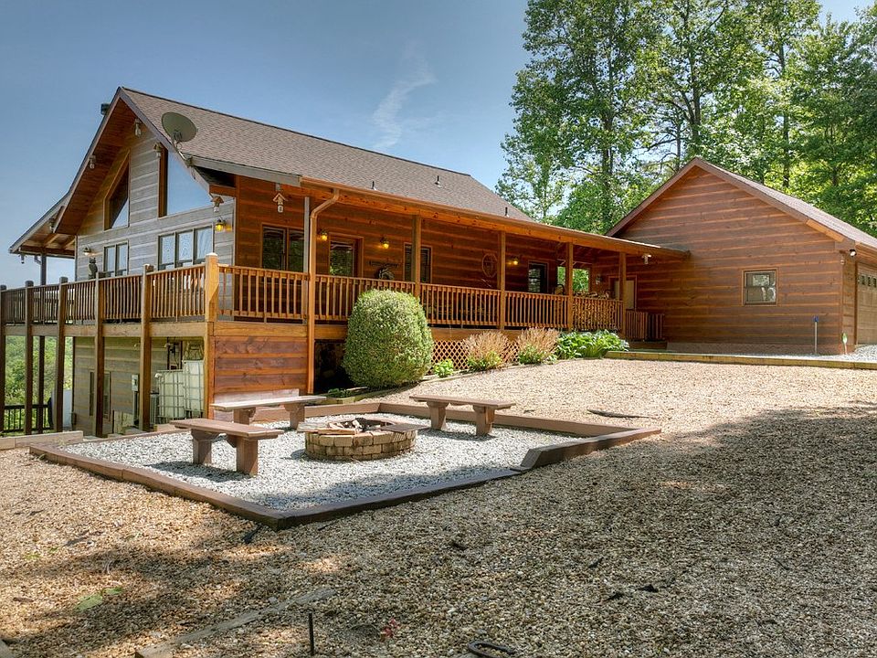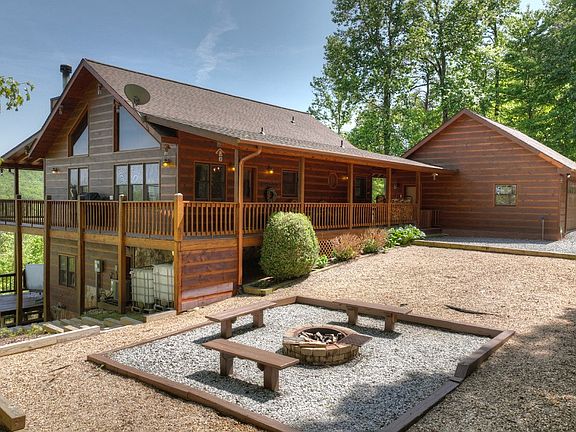 BLACKBERRY LODGE in the HEART OF ASKA ADVENTURE AREA offers plenty of room for family and friends to gather to enjoy the open floor plan, spacious kitchen open to the great room with stacked stone fireplace and a direct view to the long-range mountain just outside your door. The owners suite is located on the main level w/extra loft area, main level expansive deck to sit on and enjoy the view, full-finished basement complete with recreation room and hottub just outside on deck overlooking the view, detached 2-car garage AND outdoor amenities of horsehoe and firepit. Located in the Aska Adventure area just minutes to downtown Blue Ridge for shopping and dining, Lake Blue Ridge, Toccoa River for kayaking, canoeing and tubing, and the National Forest for miles of hiking trails. This one is currently in a cabin rental program with great income!!