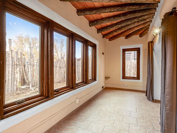 This is an amazing opportunity to own two separately deeded historic eastside properties, peacefully situated at the end of a short lane just off of renowned Canyon Rd. The smaller home would be the perfect guesthouse, studio or art gallery. These traditional adobe homes have many features to admire including hardwood floors, vigas, kiva fireplaces, delightful brick courtyards and upgraded insulated windows. Water rights from the adjacent Acequia Madre add to the appeal of these lovely homes surrounded by mature trees and lush greenery. Zoned Arts and Crafts to allow for arts related businesses, these properties are walking distance to local restaurants, art galleries and the Patrick Smith Park. Owned by one family since 1952.