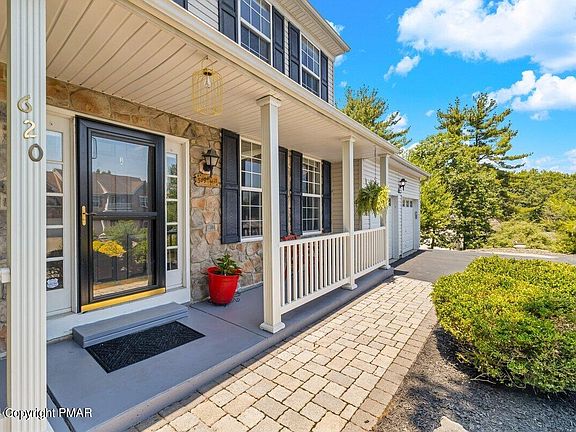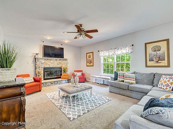 Property is Under Contract and considering back-up offers only at this time. Experience ultimate privacy in the highly desirable Country Club of the Poconos. Conveniently situated close to numerous Pocono attractions, this colonial home boasts impressive curb appeal and is tucked away in a private section of the development. Freshly landscaped, this lovely residence features 4/5 bedrooms, 4 bathrooms, a fully finished walkout/sunlight basement, and a 2-car garage. Delight in a spacious eat-in kitchen equipped with stainless steel appliances leading to the back entrance and overlooking your living room area with a fireplace. Steps away you will also find an additional family room and dining room area with crown molding and a butler's pantry. Venture out to the Trex deck and patio area th four ample bedrooms, while the primary bedroom features a spacious sitting area, his and her closets, and an en suite bath with a whirlpool tub and shower. The lower level is perfect for entertaining guests, submersed in natural light from the windows and walkout. The finished basement provides a vast space currently utilized as a recreational area and a 5th bedroom, complete with an accessible bathroom. An abundance of space, including a storage area, and communal amenities is available for the entire family and your guests! Experience the peaceful tranquility of this home, situated only 90 minutes away from the bustling metropolitan areas of New York and Philadelphia.