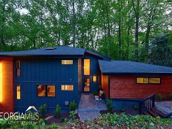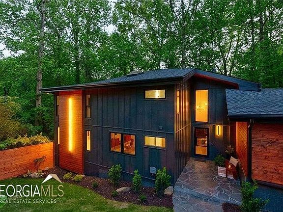 Modern home Enthusiasts, this oneas for you! The only one of itas kind in Sandy Springs for under $1.5m; you donat want to miss this one! This stunning 4 bedroom, 4 bath home in the desirable Londonberry neighborhood boasts a mid-century modern/contemporary design that has received a sexy face lift to include Sherwin Williams TriCorn Black paint with high quality cedar and LED lighting accents on the outside with smart and modern touches on the inside by award-winning design and build company, Urban Dwell Atlanta. As you enter the home, you'll immediately notice the attention to detail and the high-end finishes that make this home truly special. The large windows throughout let in plenty of natural light, which further accentuates the lush greenery outdoors. The open-concept living and dining areas are perfect for hosting large gatherings. The kitchen is truly a chef's dream. The high-end Viking appliances, custom cabinetry, and beautiful waterfall quartz countertops make it the perfect space for preparing meals and entertaining guests. The large u-shaped island provides ample workspace, conversation areas and seating, making it easy to cook and socialize at the same time. The home is also energy efficient and smart featuring Brilliant Smart Home System technology. The thermostats and every light switch can be controlled with a click of a button from your phone or through Alexa. Upstairs, the owner suite oasis makes you feel as if you're in a treehouse. Boasting an en suite complete with walk in closets with custom hardware, soaking tub and HEATED floors, you will truly never want to leave! We havenat even gotten to the outdoor living space yet! The property, situated on The Long Island creek, sits on over 1.5 acres of land inside a cul de sac, providing plenty of space and privacy to spread out. Whether its viewing the sunset from the outdoor deck as you listen to the calm babble of the creek, taking an afternoon siesta or watching Sunday football in the screened sunroom (TV's come with the home), or chilling in the hot tub, there is something for whatever tickles your fancy at any given moment! The driveway can hold at least 10 cars for all your entertainment needs. Back inside, the full finished basement offers an open flow featuring a recreation area, wet bar, wine display feature with cedar surround, family room, additional storage and bathroom. Finally, the location of this property is unbeatable. Londonberry is one of the most desirable neighborhoods in Sandy Springs. It's close to shopping, dining, and entertainment options, and it's also located near some of the best schools in the area. If you love a good ORIGINAL modern tastefully designed with all of todays creature comforts, you will be in for a treat when viewing this stunner. It's the perfect blend of luxury, comfort, and convenience, and it's sure to exceed all of your expectations.