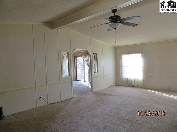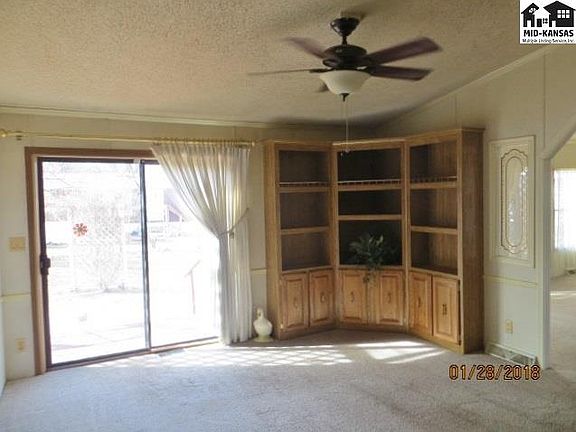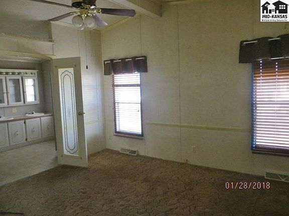 Nice open floor plan in this manufactured home. Awesome living room to entertain a crowd. Separate dining room with counter bar that open into the kitchen. Kitchen has lots of cabinets and counter space. West side has a Large master bedroom and full bath with separate shower. Two more bedrooms on the east side of the home. 2nd bathroom and utility . This home sets on two lots with two storage sheds. Lot rent is $300.00. Must see for the price.
