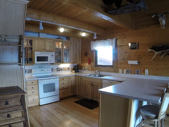This custom log and wood frame home sits on just over 15 acres, offering the privacy, peace and quiet you have always dreamed of. The 3 bedroom 3 bath house also has a home office, wood stove in the family room, and much more. Jetted tub in the master bath and private hot tub outside. In addition to the home, there are numerous outbuildings on the property including a metal Cleary-built barn with insulated refrigeration room. Two car log garage with wood stove and shop area, an additional log shop, green house, raised garden bed and custom chicken coop. Mountain views top it all off. Call for a private showing of this extraordinary property for yourself.