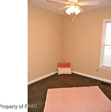1 bedroom available for rent with 1 full private bath. Shared areas are living room and kitchen. *The whole house is not for rent, just the room.* New security system installed AUG 2018. New dishwasher and laundry AUG 2018. MUST like large dog(s). Very friendly 75 pound ball of fluff as an additional form of "security". Property is "furnished" minimally. 2 chairs on front porch, washer/dryer, small love seat couch in living room, fully operational kitchen, and new washer and dryer located in garage. Very close to Ft. Bragg and shopping! Utilities will be split evenly between tenant and owner (Wifi, water, electricity, and gas). Additional $10 pet fee/month applies.