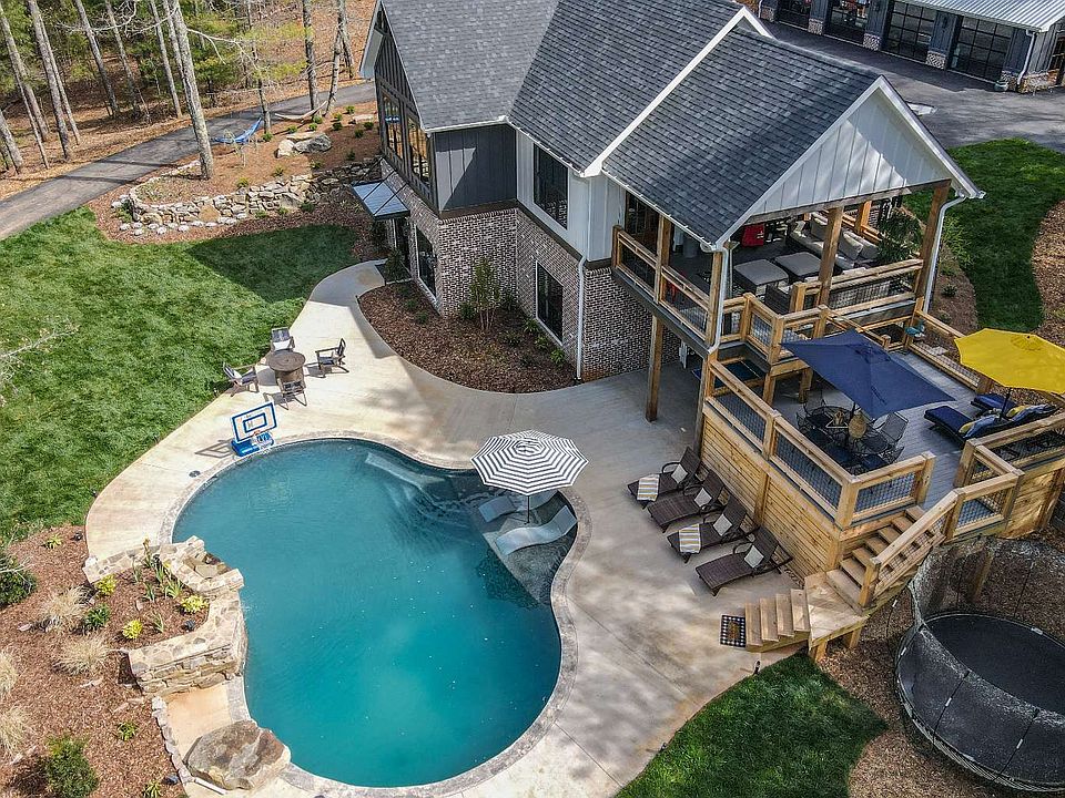 $2,500.00 SELLING BONUS at closing! Motivated Seller! This stunning, custom, high end w/upgraded features, new property has it all! It is gorgeous! Interior has designer decor and special features from top to bottom. From the custom floating staircase to the tiled showers, custom wood beams, Quartzite counters, leather granite, Anderson windows, Wolf range, and huge closets. 6.49 acres with plenty of outdoor entertaining areas from the heated in ground 18x36 pool, the party deck, fabulous covered porch w/fireplace, fire pit area, pond, branch and much, much more! See the Notable feature list in links.