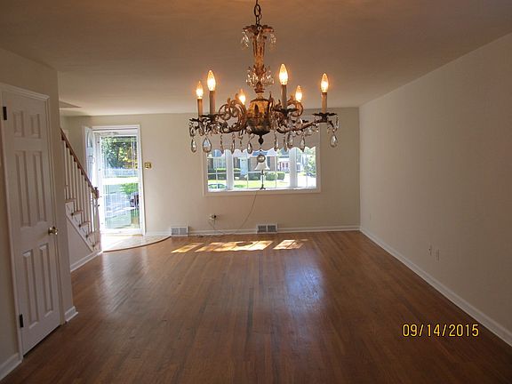 One of a Kind expanded Cape Cod is ready for immediate possession. New Eat in Kitchen offers beautiful white cabinets, marble countertop, dishwasher, microwave, refrigerator, glass backsplash, and the kitchen table and chairs are included. Addition is offered as Family Room and/or fourth bedroom with brick fireplace and elegant glass cut entrance door. Large Living Room and Dining Room combination are highlighted with great hardwood flooring, freshly painted, expanded bow windows adding plenty of light(Valances and curtains are available to buyers) First floor bedroom is adjacent to Powder Room. Two oversized bedrooms on the second floor and full bathroom. Large attached oversized two car garage with full attic for storage-hoist for lifting heavy equipment into garage. Full finished basement offers, laundry area, second family room, workshop with workbenches, and utility area. Vinyl fenced in rear yard with patio and picnic table and bench-very private!