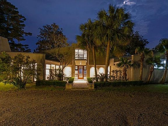 This isn't your typical river house. Perched on 3.02 acres of pure waterfront magic featuring a private lagoon with bridge-accessed island, this striking contemporary gem delivers serious wow factor with walls of floor-to-ceiling windows that blur the lines between inside and out.