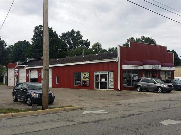 Tremendous Opportunity! Over 7700 sq. ft. with shop, showroom, offices. 7 overhead doors. Currently used as used car sales and auto repair shop. Many other possibilities. High visibility with signage and heavy traffic.