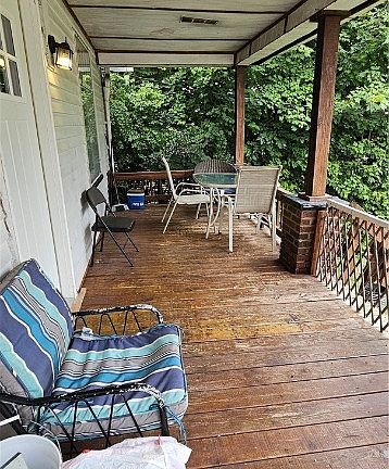 Attention Investors! Currently used as a one-bedroom unit, this charming ranch-style home offers a clean and updated living space all on the first floor. The current layout includes a bedroom, kitchen, living room, and dining room. With some modifications, it could easily be converted into a two-bedroom home by utilizing the dining room as a second bedroom and taking advantage of the adjacent bathroom and 7x5 walk-in closet. The kitchen boasts ample cabinet space, and there's a convenient hallway pantry for additional storage. The inviting front porch provides a perfect spot to relax and enjoy the outdoors, while the off-street cement driveway offers convenient parking for at least two cars. A handy shed and a chain-linked fence complete the backyard.