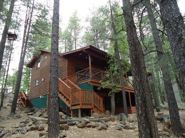 Beautiful Log Sided Cabin situated on a spacious, heavily treed lot. 2 Car Garage Plus extra Parking. Amenities include 4 Bedrooms, 3 Baths. Great Room with vaulted ceilings & large Rock Fireplace. Guest Quarters Downstairs has a separate entrance including living area, Fireplace, Bedroom & Bath. Huge covered Front Deck. FURNISHED. INCLUDING APPLIANCES & TV'S .CALL AGENT FIRST BEFORE SHOWING CABIN.