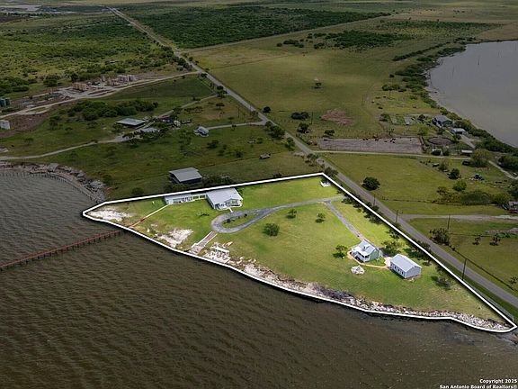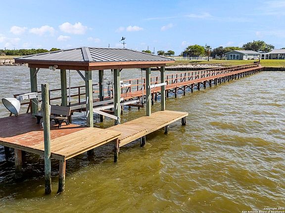 Your private waterfront retreat on Copano Bay near Rockport, TX awaits! Tucked away on approximately 3 acres, this fully furnished coastal estate offers three unique cottages with bay views, a boat lift, lighted pier, and endless possibilities perfect for full time living, weekend escapes, or short-term rental income. The main house features 2 bedrooms, 1 bath, and multiple outdoor spaces to enjoy grilling, sunsets, sea breezes, and starry nights! The adjacent Copano Cottage sleeps up to 8 with king bed, bunk beds and full bath ideal for guests or rentals. The Bakery House adds even more flexibility with king bed, and upstairs loft area with 2 twin beds, and another full bath. Your private coastal escape gated, alarmed, and protected with around the clock video security. From investment potential to coastal serenity, this one of a kind property is the total package, secure, stylish and simply unforgettable!
