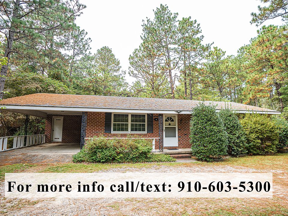 Brick 3BR/1.5BA ranch on .75 acre lot in Southern Pines with garage & carport. Smokers house, needs cosmetic updates, main bath has been remodeled. 10-12 year old roof, 1 year old HVAC, and new hot water heater. Huge level rear yard. **Note that there is a proposed utility easement but front yard won't be reduced in size** See FLEX/MLS docs & Realtor remarks. PLEASE verify schools with school board.