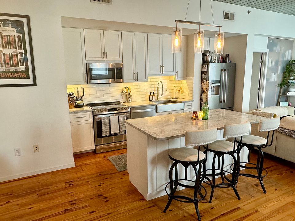 Enjoy the perfect blend of urban living and modern comfort in this spacious two-bedroom, two-bathroom unit right in the heart of Atlanta's top neighborhood. The kitchen and bathrooms are recently updated, boasting top quality kitchen appliances, a new island, custom window shades, and a beautifully designed finish. This loft concept has been updated to include bedroom and closet doors to ensure top comfort and privacy. Each bedroom has its own ensuite bathroom complete with a tub/shower combo, and a walk-in/large closet. Certain pieces of furniture are available with rental (if desired) - including island chairs, living room corner shelf, plus all curtains and bedroom drawers. Additional items can be discussed. Enjoy serene views from your private outdoor balcony overlooking a picturesque courtyard with water features. This apartment offers a prime location across from Atlanta's premier destination, Ponce City Market, just steps away from the Atlanta Beltline. Experience the convenience of a highly walkable neighborhood with abundant dining and shopping options, and easy access to the historic Old Fourth Ward Park. The unit features desirable amenities such as hardwood and concrete floors throughout, soaring 10-foot ceilings, and ample storage. A washer and dryer are included in-unit. Benefit from two assigned covered parking spaces in a secure, gated garage, and fobbed entry for added security. Residents also have full access to the on-site fitness center, clubhouse, and courtyard. Enjoy the best of in-town living in this exceptional unit! *NO additional fees for pets, parking, or HOA.
