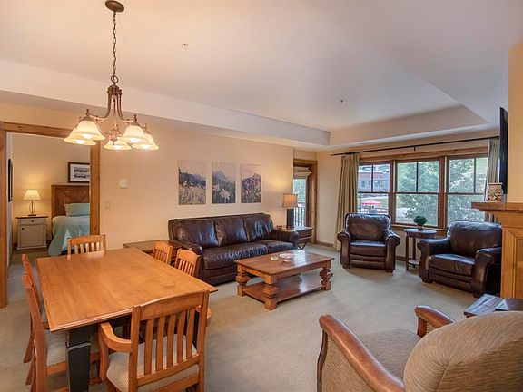 Welcome to The Lodge at Mountaineer Square, Unit 219, located in the heart of the base area Mt. Crested Butte. This prime location offers convenience and access to all the resort amenities. Upon entering unit 219, you will find a meticulously maintained 2-bedroom condo with views of the base area and ski resort. The spacious, fully equipped kitchen flows into the inviting living area, creating the perfect space for hosting gatherings. The large primary bedroom is situated on one side of the unit, providing privacy. This room features two closets and a spacious bathroom, complete with a luxurious soaking tub. On the opposite side of the condo, you will find the ensuite guest bedroom. In addition there is another full bath and a stackable washer/dryer closet located off the living area. Enjoy watching the skiers/hikers & bikers or just the beauty of the mountains from you private covered balcony. Common amenities include a fitness center, hot tub / swimming pool, on-site front desk and an underground heated parking garage. The Lodge at Mountaineer Square is also conveniently located on the free bus shuttle. Whether you are coming to visit during the summer or winter months this condo will provide the ideal place to rest after a day exploring the mountains.